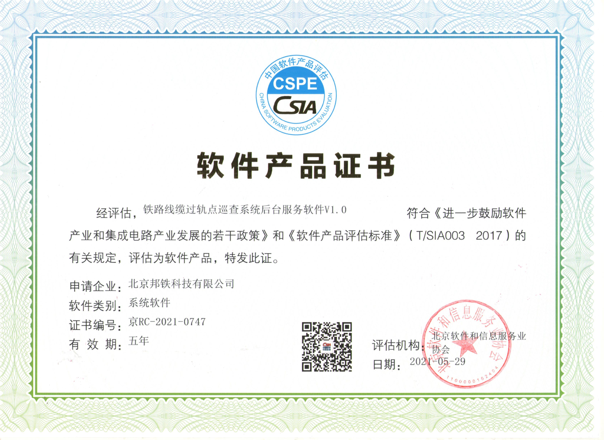 鐵路線纜過軌巡查后臺系統(tǒng)-系統(tǒng)軟件認證