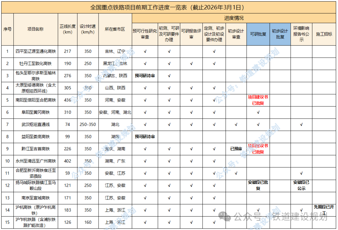 2026/03/02去年底以來,由于國家鐵路審批政策調(diào)整,所有需國家發(fā)改委批復可研的鐵路項目,不論是否進入國家中長期或五年專項規(guī)劃,批復前均需報送項目建議書并委托專業(yè)單位進行評估。自1月初以來,多條年內(nèi)擬開工高鐵項目又有了...